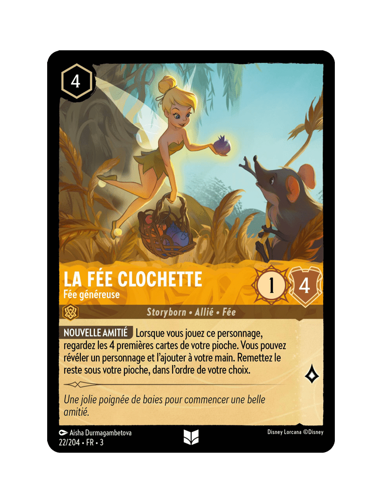 At the end of October, I'm preparing for my aunt's birthday. Since she's a Disney fan (especially Tinker Bell), I wanted to create a personalized gift. However, she's not particularly a fan of Lorcana –in memory of an introduction to the TCG which resulted in more questions than understanding –… Pourtant, comme les illus sont magnifiques, je me suis dit que customiser une carte du jeu pourrait en faire un bel objet de collection ! Bienvenue dans cette nouvelle custom Lorcana : La fée Clochette (fée généreuse)