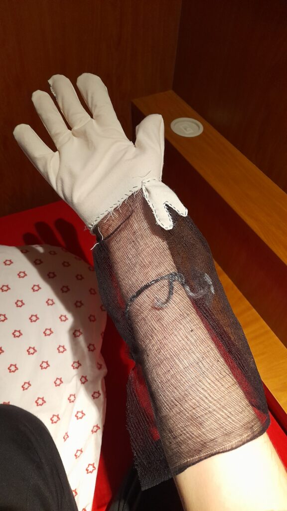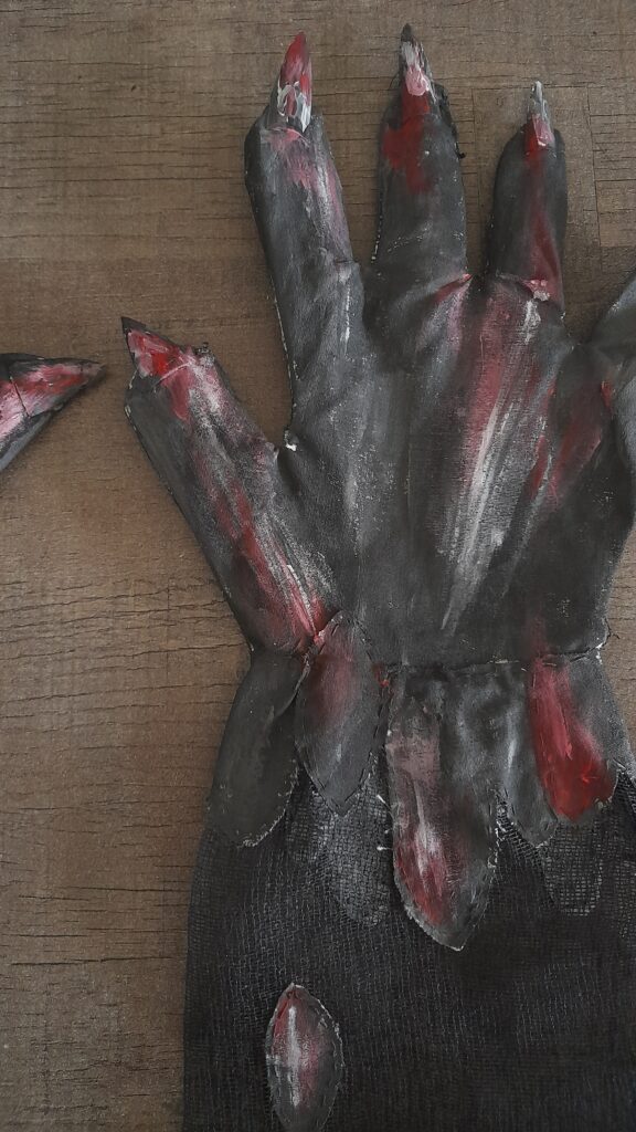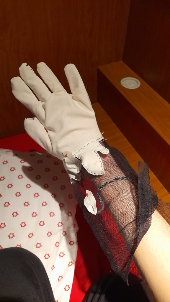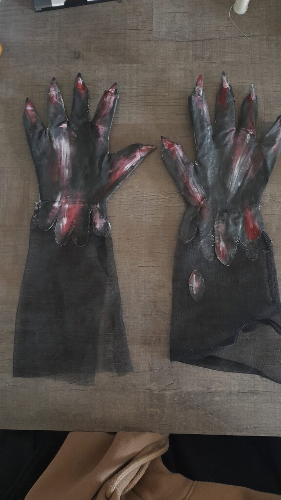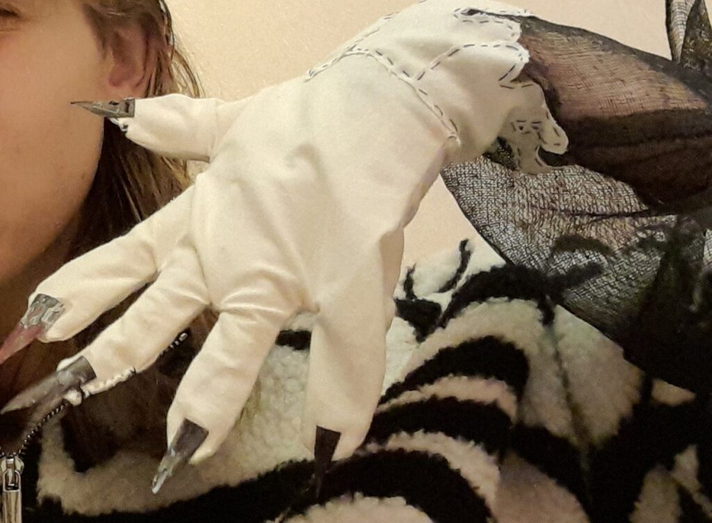 Clearly, the actor managed to put them on :). It was a really cool and rewarding opportunity to create something for someone else! Plus, since my friend is a drag queen, the gloves could be used again for performances ✨